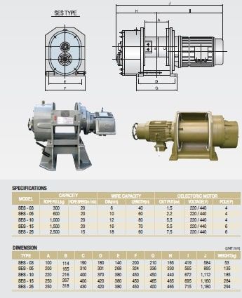 - Each of two wires for lowering and hoisting are self-sustaining, which ensures high reliability.